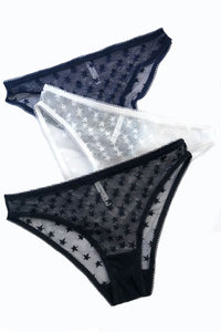 Panty estilo hipster en maya transparente de estrellas. Tallas: S para 3 a 6 en jean M para 6 a 8 en jean L para 8 a 10 en jean Combinan perfecto con Mesh Stars Bralette y muchas otras referencias!