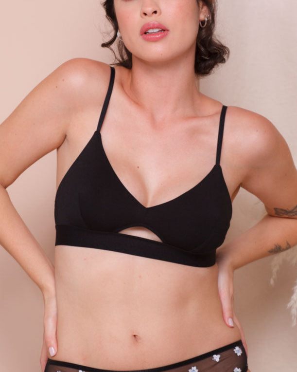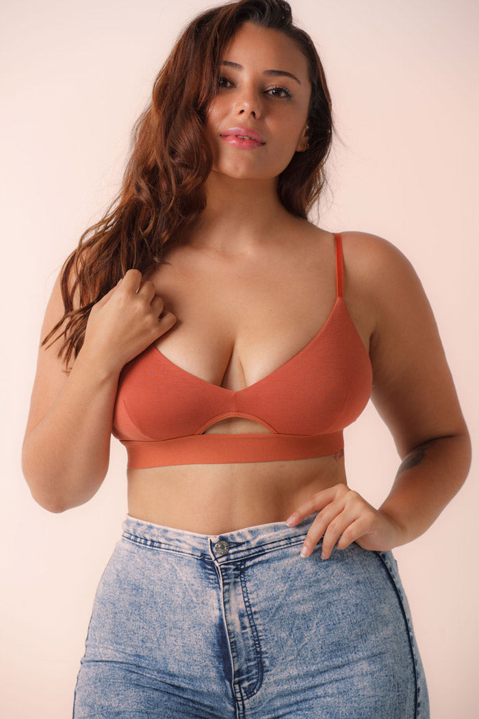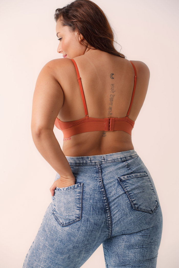 Bralette super suave y cómodo en algodón orgánico, cargaderas ajustables y base elástica para realce con broche en espalda para ajustar.